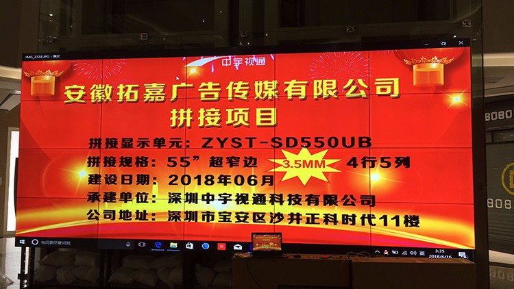 安徽拓嘉廣告?zhèn)髅?5寸拼縫拼接屏項目