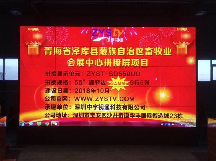 青海省澤庫縣藏族自治區(qū)畜牧業(yè)會展中心55寸超窄邊3.5mm5行5列液晶拼接屏項(xiàng)目,安裝調(diào)試完成并且順利驗(yàn)收,中宇視通科技全體職工從深圳發(fā)來賀電!