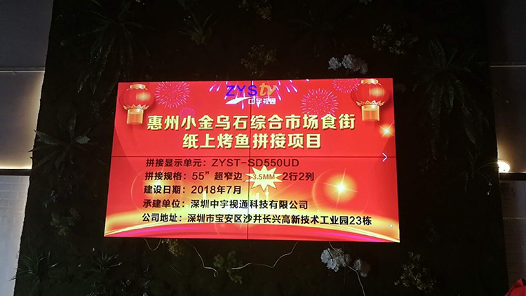 惠州小金口烏石綜合市場美食街紙上烤魚55寸拼接屏項目安裝調(diào)試完成并且順利驗收!