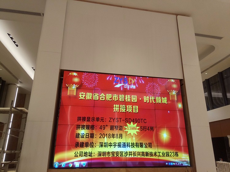 安徽合肥市碧桂園時(shí)代傾城49寸3.5mm拼縫5行4列拼接屏項(xiàng)目采用中宇視通科技的解決方案,項(xiàng)目安裝完成并且順利完成驗(yàn)收。