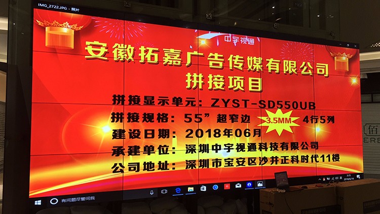 安徽拓嘉廣告?zhèn)髅?5寸拼縫拼接屏項目