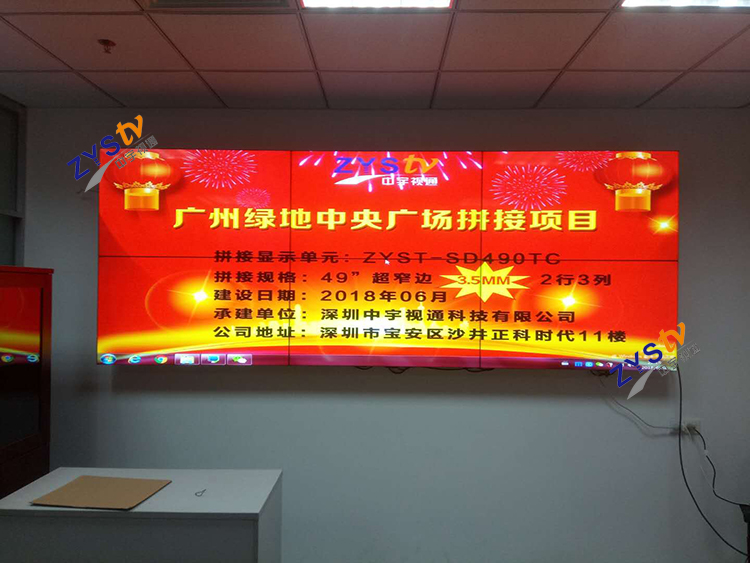 廣州綠地中央廣場采用中宇視通49寸2*3拼縫3.5mm拼接屏項目安裝調(diào)試完成。