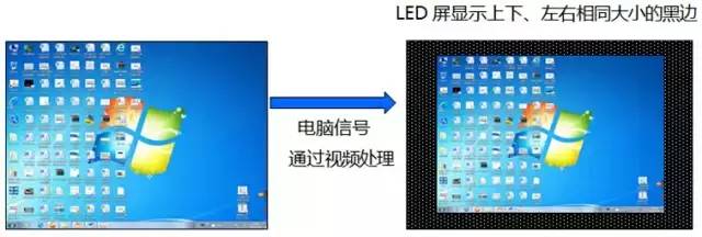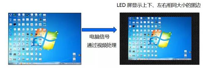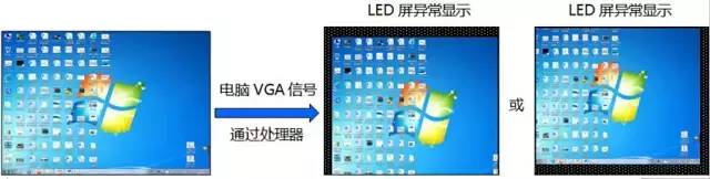 1.選擇電腦輸入信號時(VGA,DVI或者HDMI等),處理器設(shè)置正確,但是電腦桌面圖像居中顯示在LED屏上,