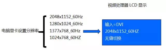 2.電腦顯卡的輸出分辨率設(shè)置不同的值,處理器LCD顯示的輸入分辨率都是一個固定值。如:一直顯示2048x1152_60Hz